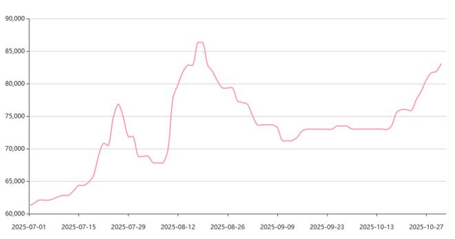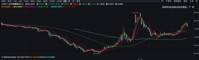 Q3单季的业绩回暖,主要是锂价反弹。期货方面,强势反弹。以碳酸锂2511合约为例,自7月1日的6万/吨起步,一路拉升至8月18日盘中最高点90100元/吨,累计涨幅42.88%;后虽有回落,但基本在73000元/吨左右横盘,整个Q3累计涨幅也达到16.55%。进入10月中旬,再度走强,截至10月31日,收在79300元/吨。