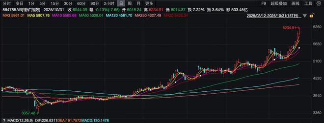 复盘来看,第三季度,锂矿指数(884785.WI)的走势明显较锂价走势更为稳健,期间并无大幅回撤,累计大涨27.54%。且进入10月下旬,走势更加陡峭,7-10月累计涨幅高达46.10%。